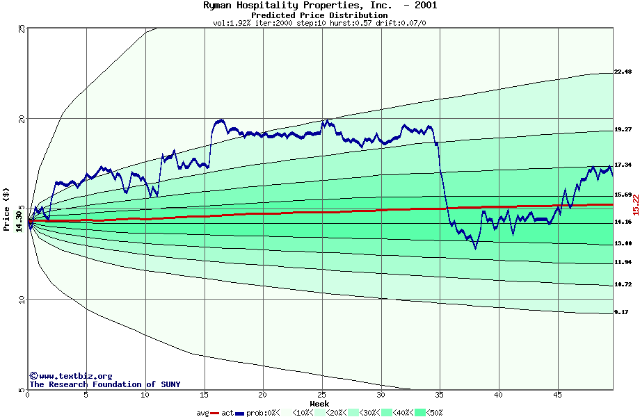 The following graph plots the year-to-date performance of the stock for 2001 compared to the probability calculated by a random walk model.