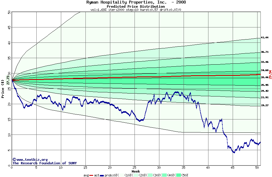The following graph plots the year-to-date performance of the stock for 2008 compared to the probability calculated by a random walk model.