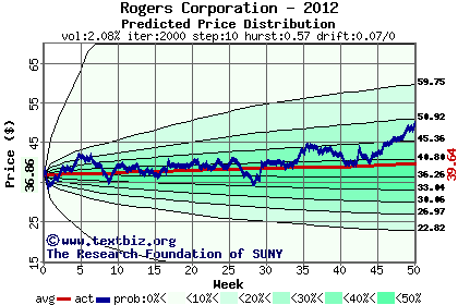 The following graph plots the year-to-date performance of the stock for 2012 compared to the probability calculated by a random walk model.