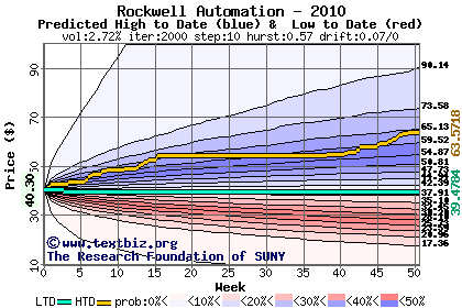 The following graph plots the year-to-date performance of the stock for 2010 compared to the probability calculated by a random walk model.