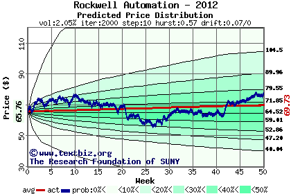 The following graph plots the year-to-date performance of the stock for 2012 compared to the probability calculated by a random walk model.