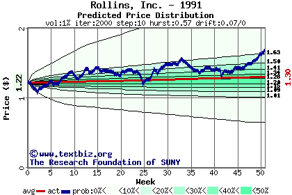 The following graph plots the year-to-date performance of the stock for 1991 compared to the probability calculated by a random walk model.