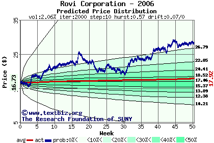 The following graph plots the year-to-date performance of the stock for 2006 compared to the probability calculated by a random walk model.