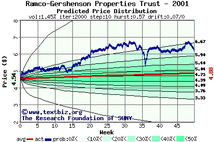 The following graph plots the year-to-date performance of the stock for 2001 compared to the probability calculated by a random walk model.