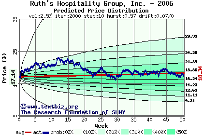 The following graph plots the year-to-date performance of the stock for 2006 compared to the probability calculated by a random walk model.