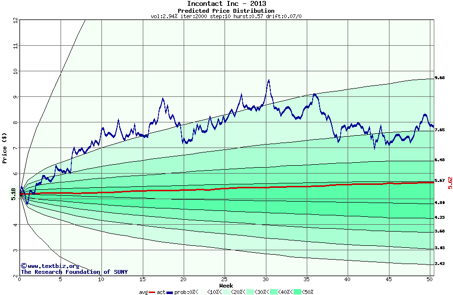 The following graph plots the year-to-date performance of the stock for 2013 compared to the probability calculated by a random walk model.