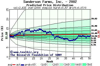 The following graph plots the year-to-date performance of the stock for 2002 compared to the probability calculated by a random walk model.