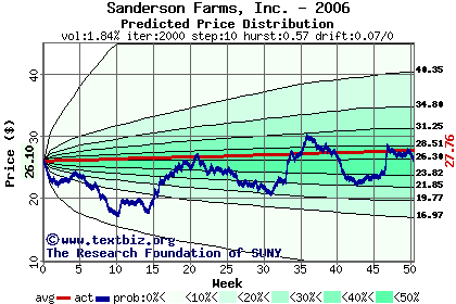 The following graph plots the year-to-date performance of the stock for 2006 compared to the probability calculated by a random walk model.