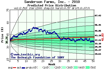 The following graph plots the year-to-date performance of the stock for 2010 compared to the probability calculated by a random walk model.