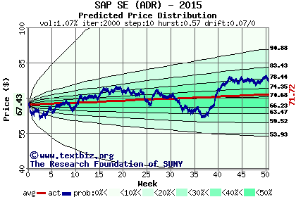 The following graph plots the year-to-date performance of the stock for 2015 compared to the probability calculated by a random walk model.