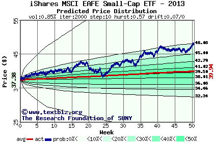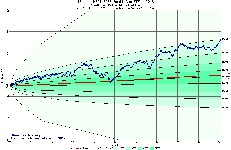 The following graph plots the year-to-date performance of the stock for 2013 compared to the probability calculated by a random walk model.