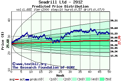 The following graph plots the year-to-date performance of the stock for 2012 compared to the probability calculated by a random walk model.