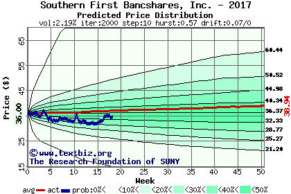 The following graph plots the year-to-date performance of the stock for 2017 compared to the probability calculated by a random walk model.