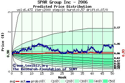 The following graph plots the year-to-date performance of the stock for 2006 compared to the probability calculated by a random walk model.