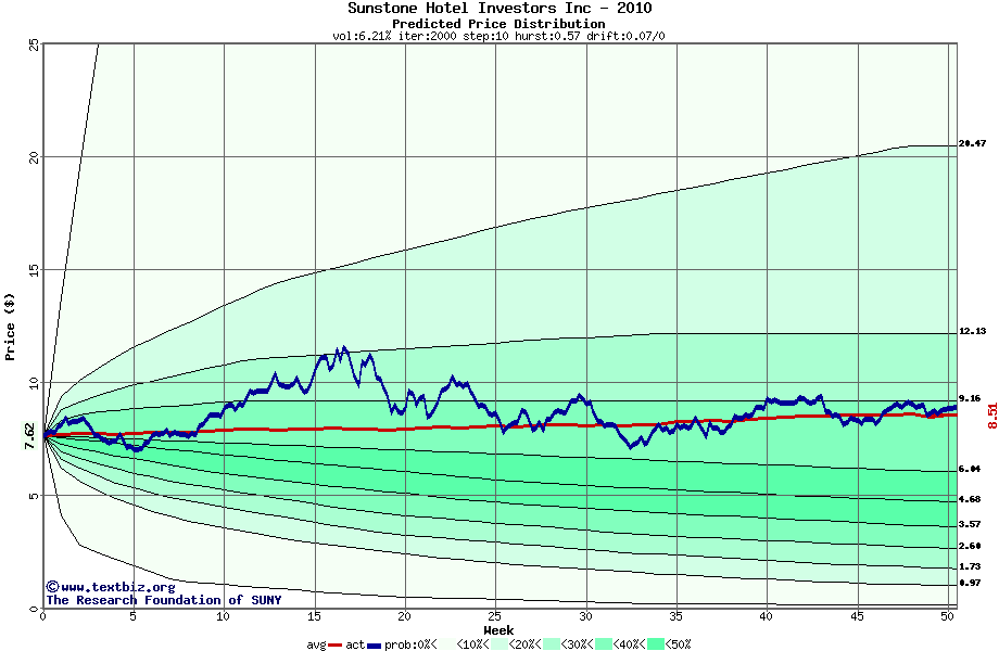 The following graph plots the year-to-date performance of the stock for 2010 compared to the probability calculated by a random walk model.