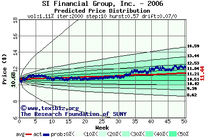 The following graph plots the year-to-date performance of the stock for 2006 compared to the probability calculated by a random walk model.