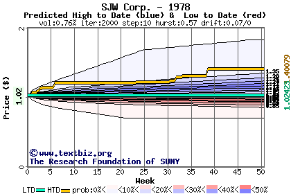 The high to date and low to date prices of the stock plotted against a random walk model for 1978 (what's this?).