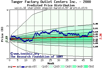 The following graph plots the year-to-date performance of the stock for 2000 compared to the probability calculated by a random walk model.