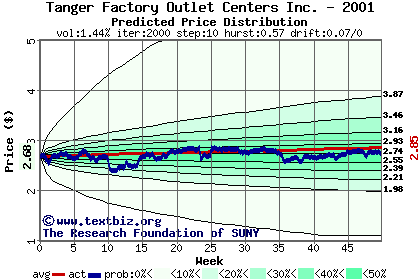 The following graph plots the year-to-date performance of the stock for 2001 compared to the probability calculated by a random walk model.