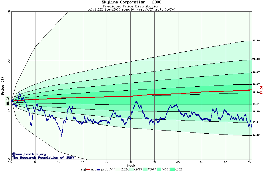 The following graph plots the year-to-date performance of the stock for 2000 compared to the probability calculated by a random walk model.
