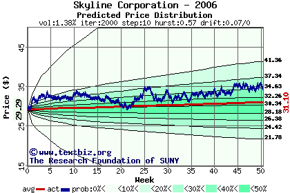 The following graph plots the year-to-date performance of the stock for 2006 compared to the probability calculated by a random walk model.