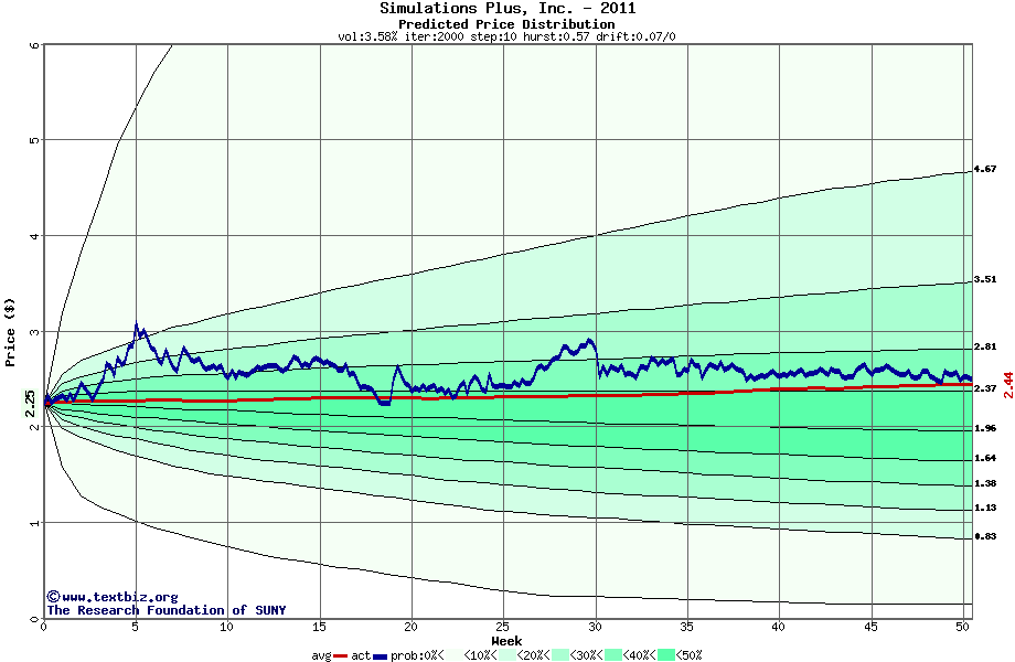 The following graph plots the year-to-date performance of the stock for 2011 compared to the probability calculated by a random walk model.
