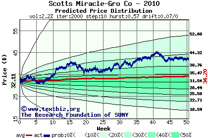The following graph plots the year-to-date performance of the stock for 2010 compared to the probability calculated by a random walk model.