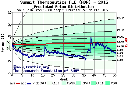 The following graph plots the year-to-date performance of the stock for 2016 compared to the probability calculated by a random walk model.