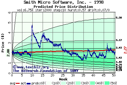 The following graph plots the year-to-date performance of the stock for 1998 compared to the probability calculated by a random walk model.