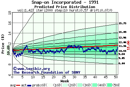 The following graph plots the year-to-date performance of the stock for 1991 compared to the probability calculated by a random walk model.