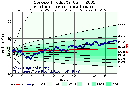 The following graph plots the year-to-date performance of the stock for 2009 compared to the probability calculated by a random walk model.