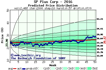 The following graph plots the year-to-date performance of the stock for 2016 compared to the probability calculated by a random walk model.