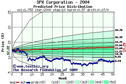 The following graph plots the year-to-date performance of the stock for 2004 compared to the probability calculated by a random walk model.