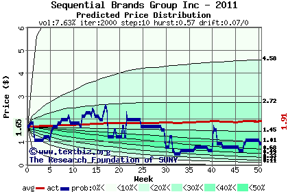 The high to date and low to date prices of the stock plotted against a random walk model for 2011 (what's this?).