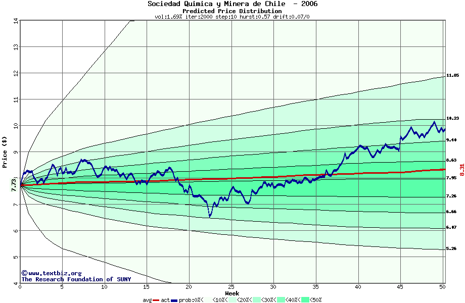 The following graph plots the year-to-date performance of the stock for 2006 compared to the probability calculated by a random walk model.