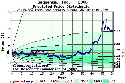 The following graph plots the year-to-date performance of the stock for 2006 compared to the probability calculated by a random walk model.