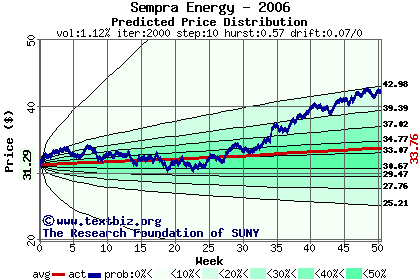 The following graph plots the year-to-date performance of the stock for 2006 compared to the probability calculated by a random walk model.