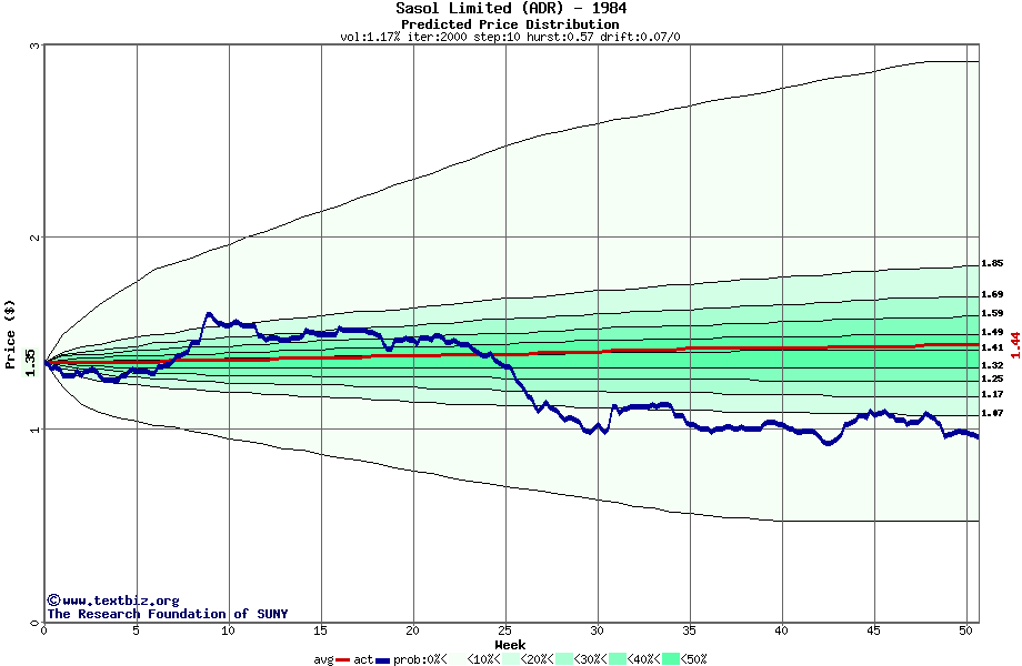 The following graph plots the year-to-date performance of the stock for 1984 compared to the probability calculated by a random walk model.