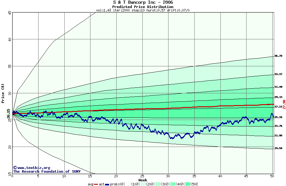 The following graph plots the year-to-date performance of the stock for 2006 compared to the probability calculated by a random walk model.