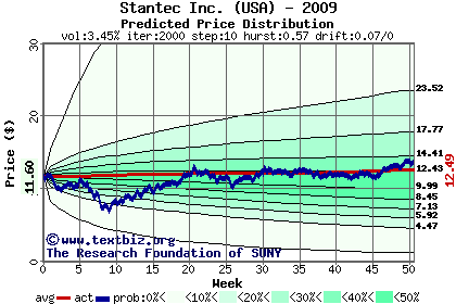 The following graph plots the year-to-date performance of the stock for 2009 compared to the probability calculated by a random walk model.