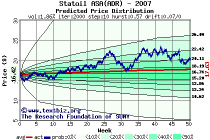 The following graph plots the year-to-date performance of the stock for 2007 compared to the probability calculated by a random walk model.