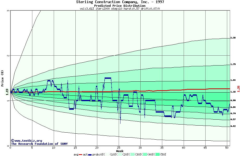 The following graph plots the year-to-date performance of the stock for 1997 compared to the probability calculated by a random walk model.