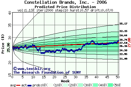 The following graph plots the year-to-date performance of the stock for 2006 compared to the probability calculated by a random walk model.