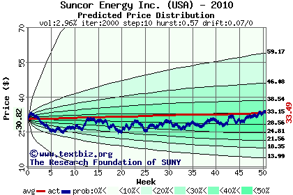 The following graph plots the year-to-date performance of the stock for 2010 compared to the probability calculated by a random walk model.