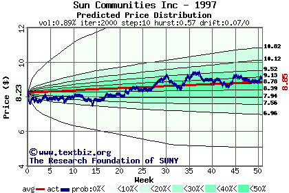The following graph plots the year-to-date performance of the stock for 1997 compared to the probability calculated by a random walk model.