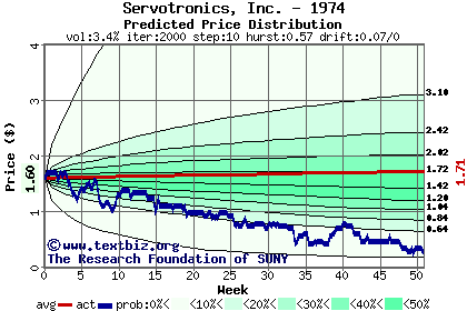 The following graph plots the year-to-date performance of the stock for 1974 compared to the probability calculated by a random walk model.