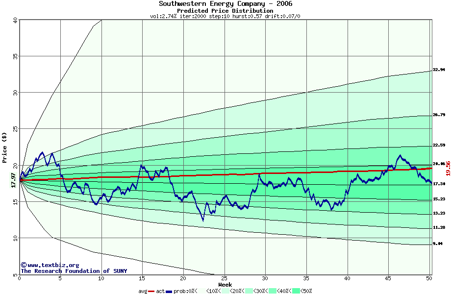 The following graph plots the year-to-date performance of the stock for 2006 compared to the probability calculated by a random walk model.