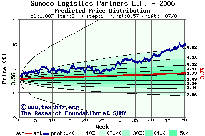 The following graph plots the year-to-date performance of the stock for 2006 compared to the probability calculated by a random walk model.