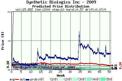 The following graph plots the year-to-date performance of the stock for 2009 compared to the probability calculated by a random walk model.