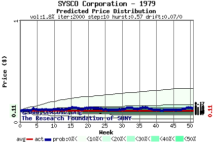The following graph plots the year-to-date performance of the stock for 1979 compared to the probability calculated by a random walk model.